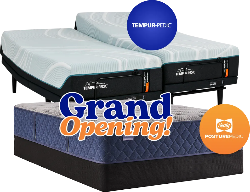 That's why we want to kickstart better sleep in our community at our Grand Opening! We will GIVE AWAY 3 premium mattresses & one incredible Tempur-Pedic mattress with an adjustable base, worth up to $15,000!